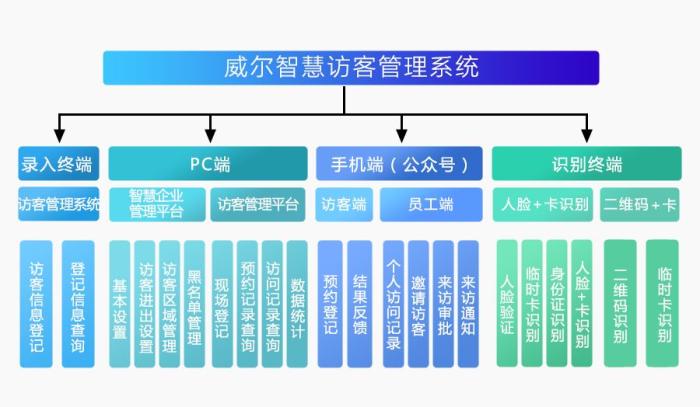 威爾智慧企業(yè)訪客管理系統(tǒng)是一個(gè)集智能IC卡、人臉識(shí)別認(rèn)證、信息安全管理、軟件、網(wǎng)絡(luò)及硬件終端為一體的智能化管理系統(tǒng)。通過在企業(yè)大門口設(shè)置人臉識(shí)別通道閘機(jī)、內(nèi)部設(shè)置門禁人臉識(shí)別終端,配合出入口人員進(jìn)出管理系統(tǒng),對(duì)進(jìn)入企業(yè)的外部來訪人員進(jìn)行全面數(shù)字化管理,高效準(zhǔn)確地進(jìn)行登記、信息錄入、確認(rèn)及授權(quán)等,提高企業(yè)安全防范等級(jí)、安保工作效率及安全性,增強(qiáng)企業(yè)形象。